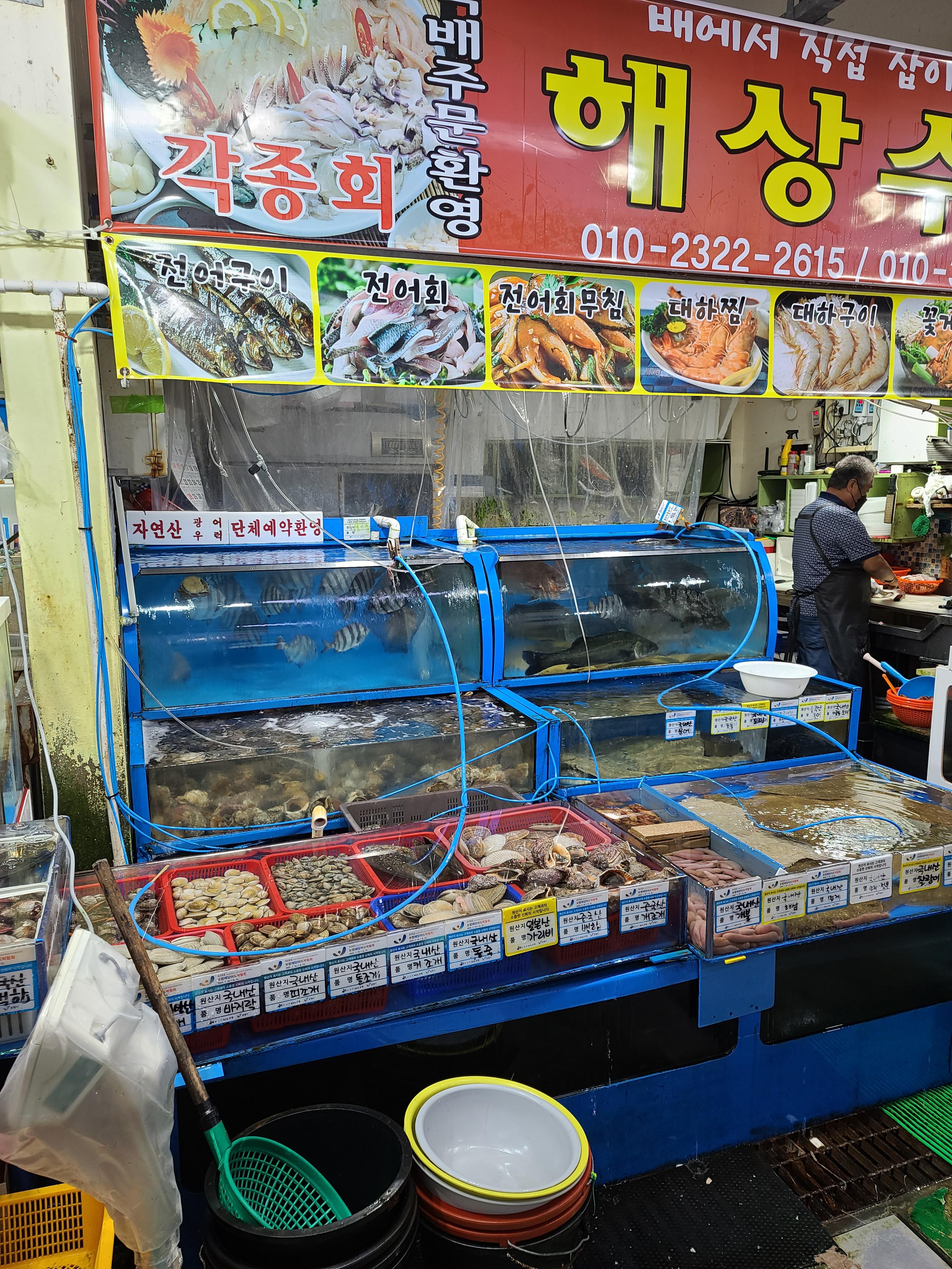 그리고 광어, 우럭 같은 활어회도 만나볼 수 있습니다. 제가 방문한 시기에는 전어가 없었지만 현수막에 전어회라고 쓰여진걸 봐서 전어철이 되면 전어도 맛보실 수 있을거 같네요.