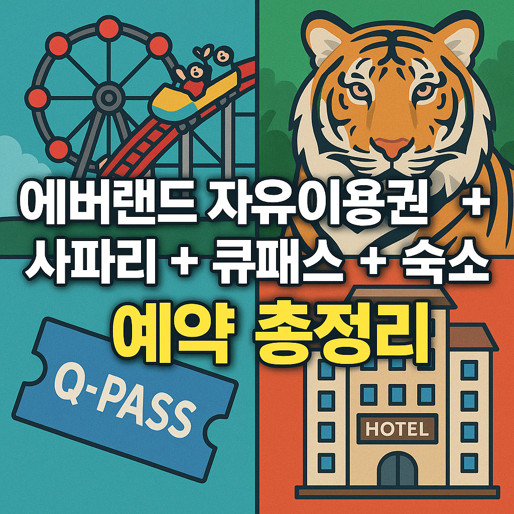 2025 에버랜드 자유이용권 · 사파리 · 큐패스 · 숙소 예약 총정리