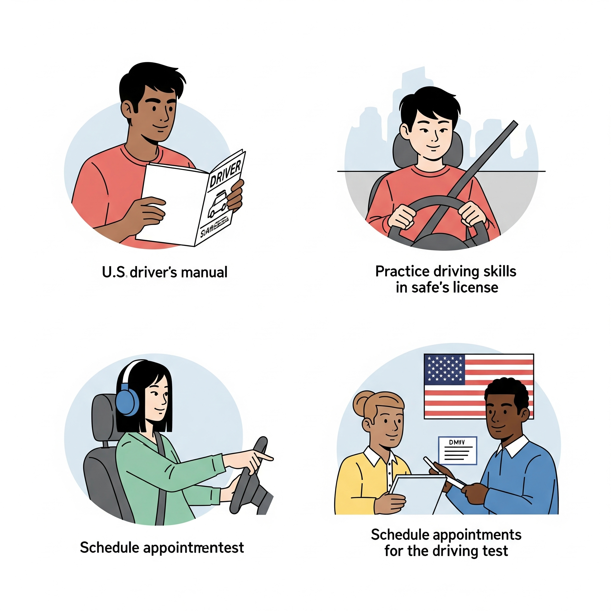 현지 DMV(Department of Motor Vehicles)에서 신청하며, 일반적인 절차는 아래와 같습니다: