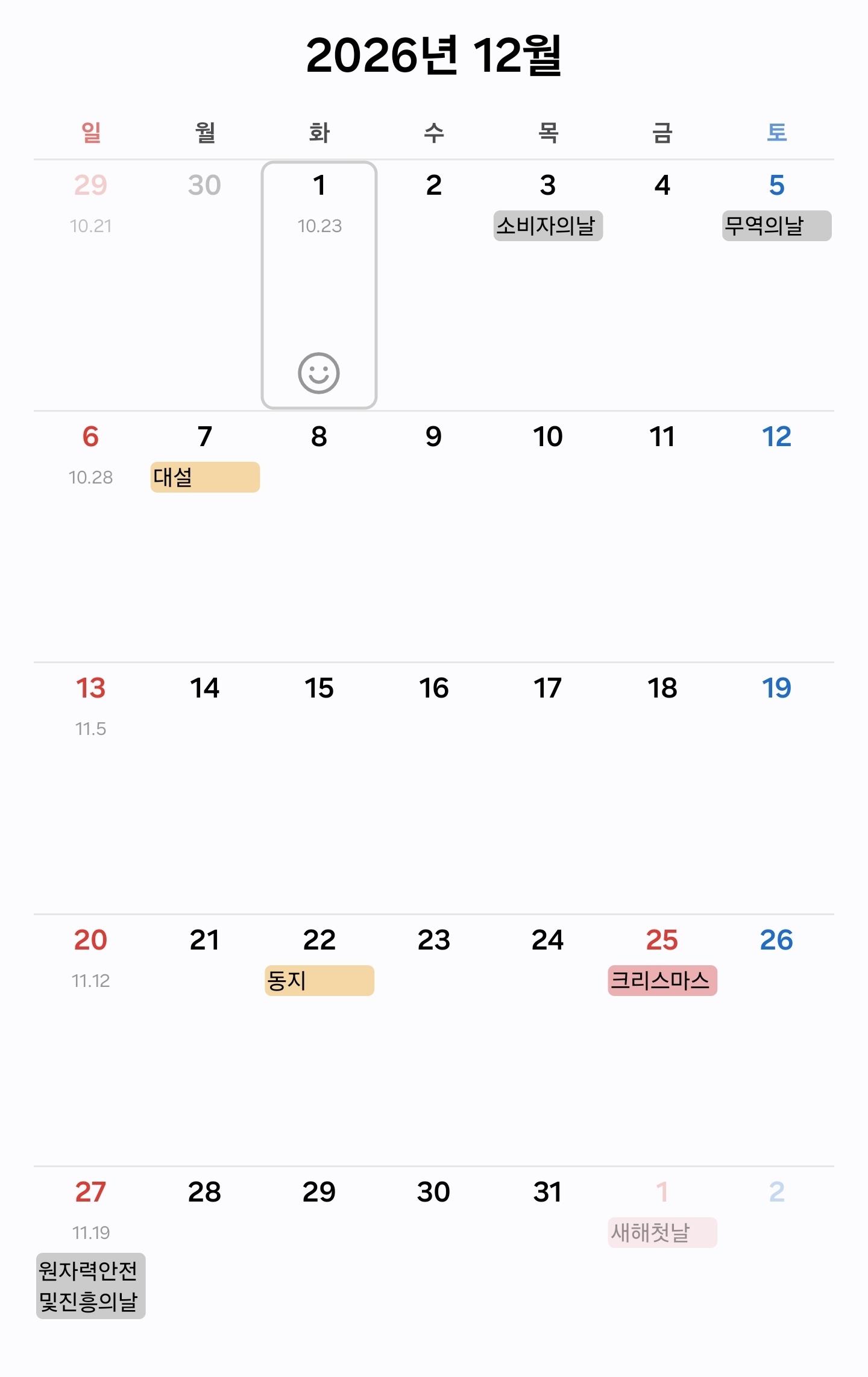 - 크리스마스(12/25, 금): 3일 연휴 가능
