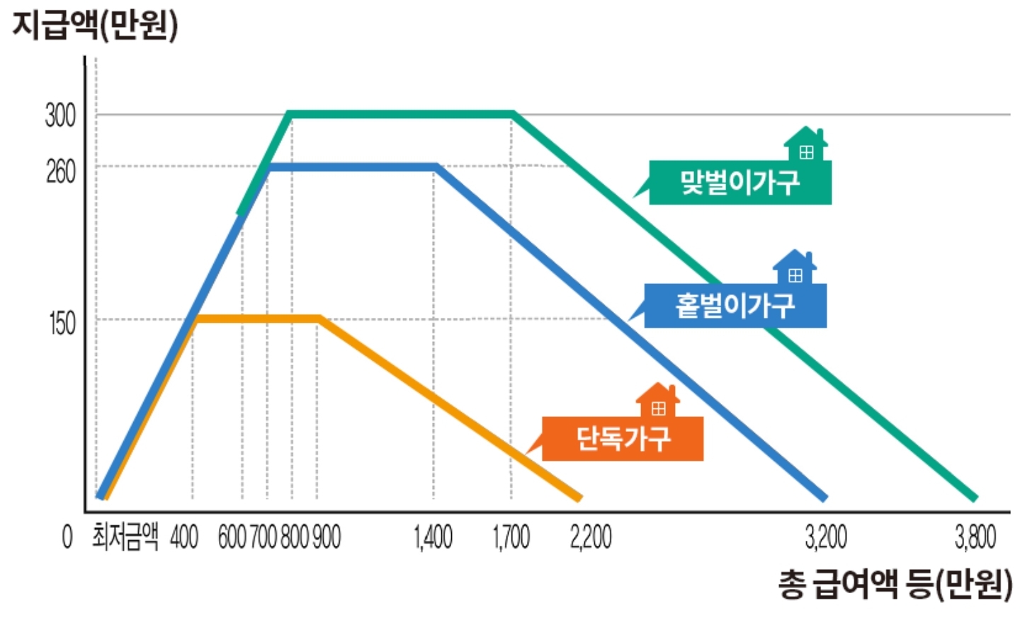 홑벌이가구 - 총소득기준금액 3,200만 원 미만