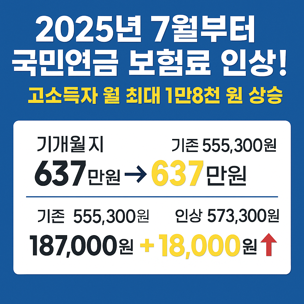 2025년 7월 1일부터 국민연금 보험료가 조정됩니다. 보건복지부와 국민연금공단에 따르면, 기준소득월액 상·하한이 아래와 같이 인상되며, 이에 따라 고소득자 및 일부 저소득자의 보험료가 상승합니다.