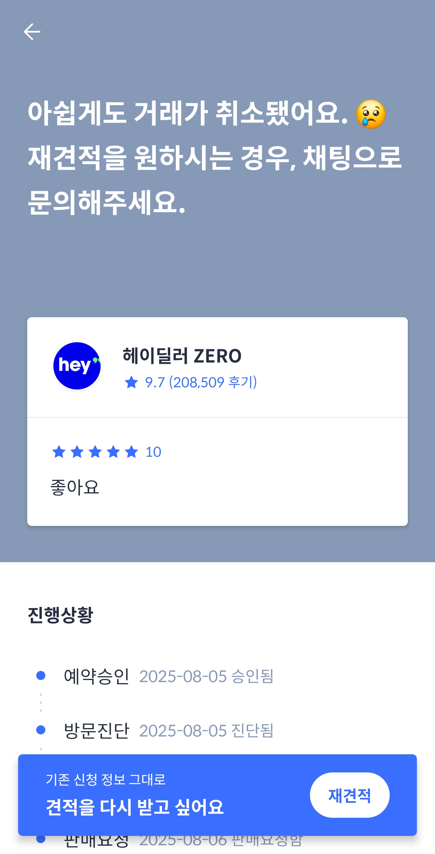 비록 이번엔 아쉽게 거래를 취소했지만, 헤이딜러의 시스템은 꽤 만족스러웠습니다.