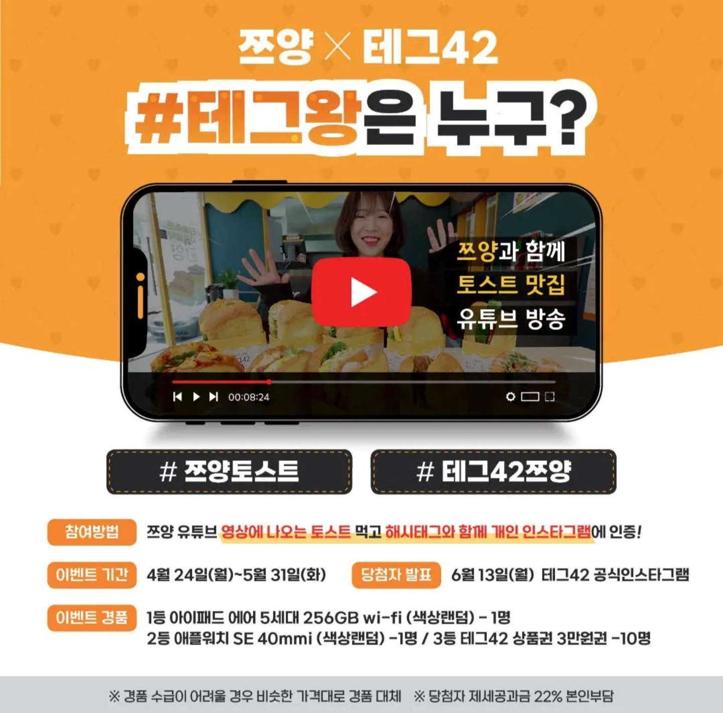 아 참 제 블로그에 오면 돈이 되는 정보를 얻으셔야 되니 테그42에서 진행하는 경품 소식도 다루어 보겠습니다.😉