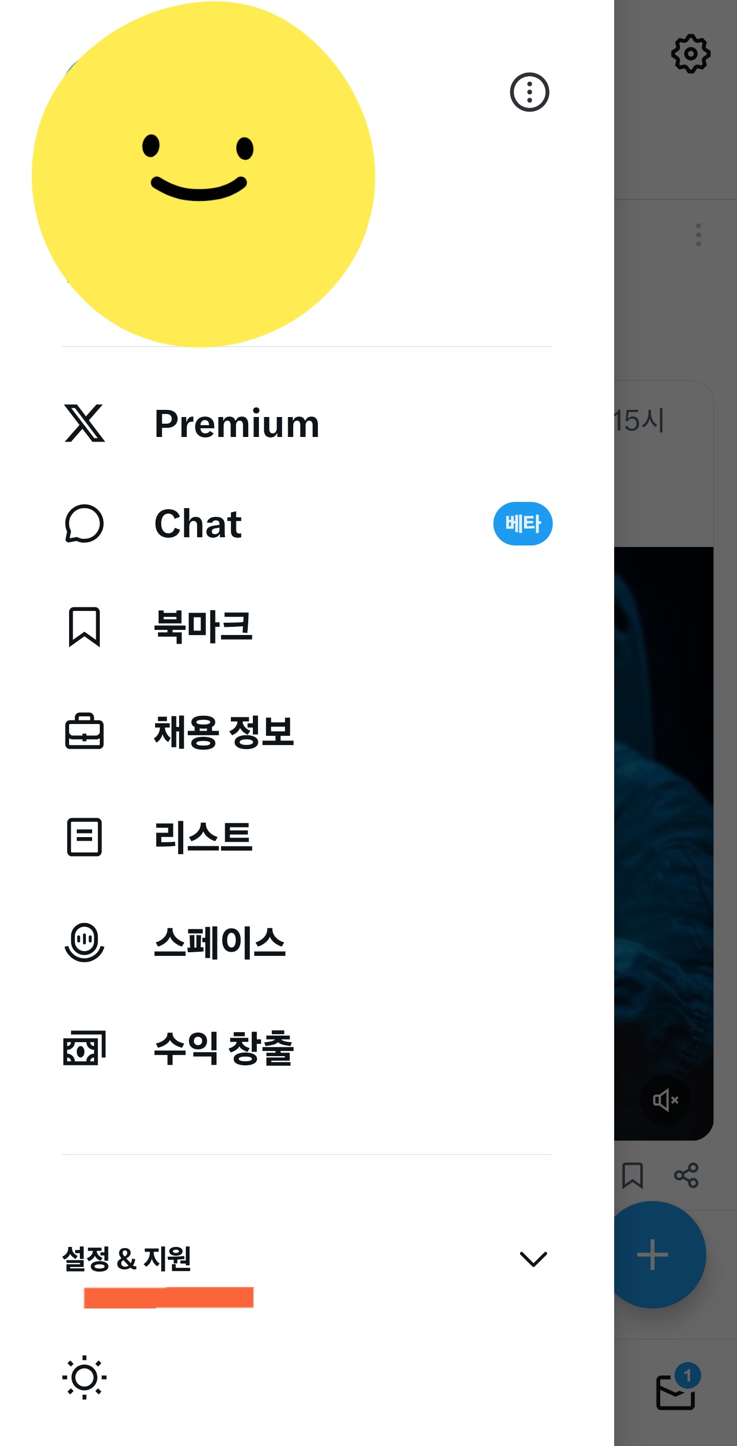 - X 앱 실행 → 왼쪽 상단 프로필 아이콘