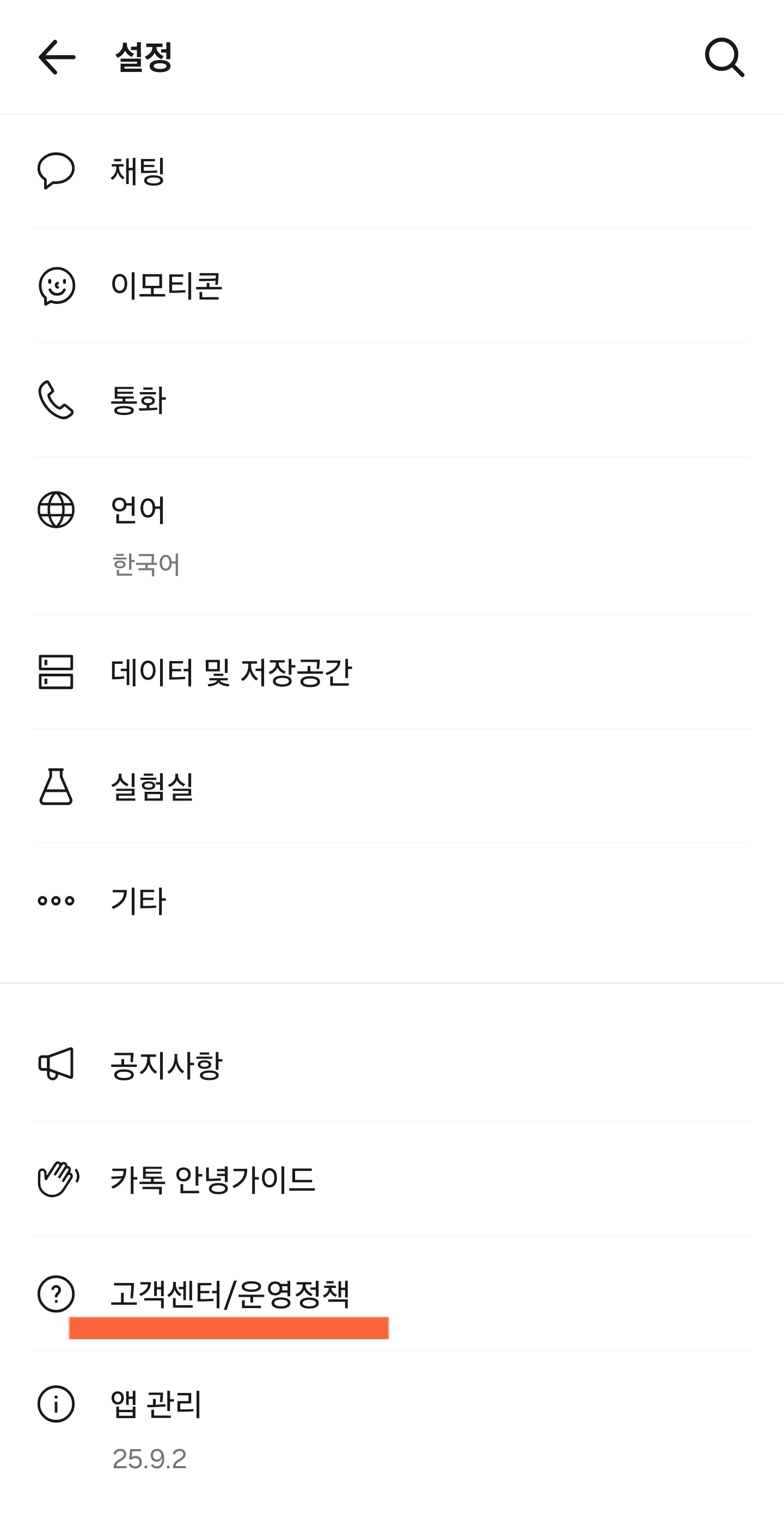 - 스크롤을 끝까지 내려 고객센터 / 운영정책 페이지로 이동