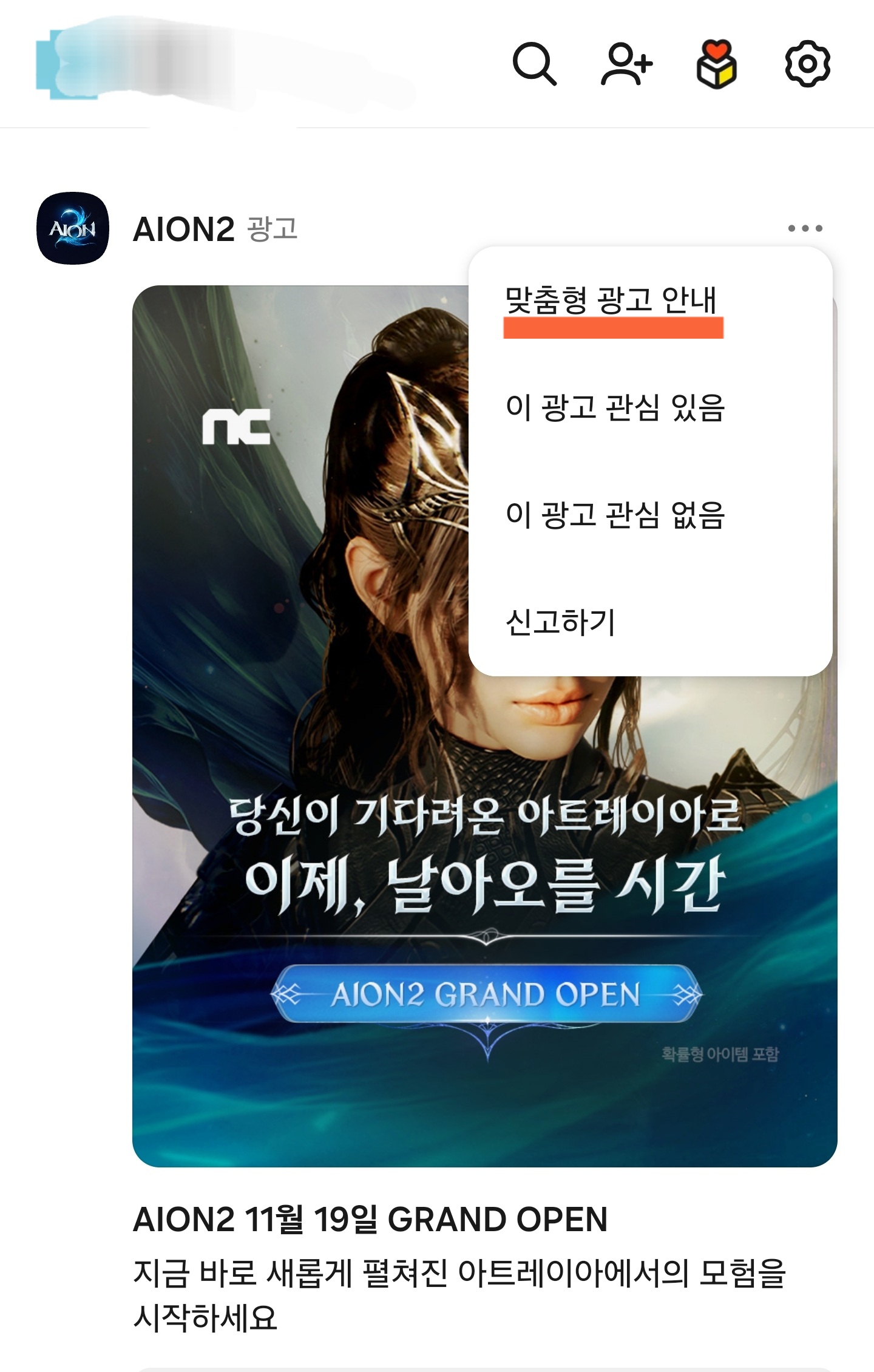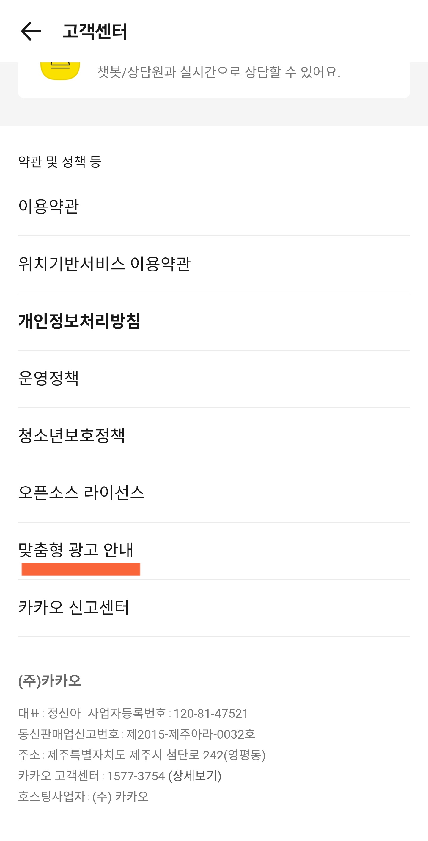 - 친구 탭 → 더보기 → 맞춤형 광고 안내