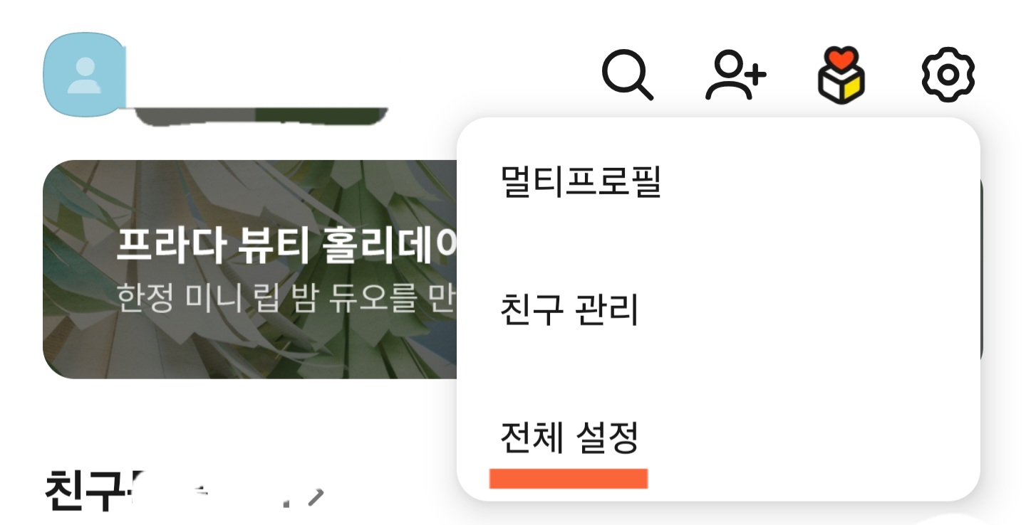 - 카톡 화면 상단의 설정(톱니바퀴) 클릭